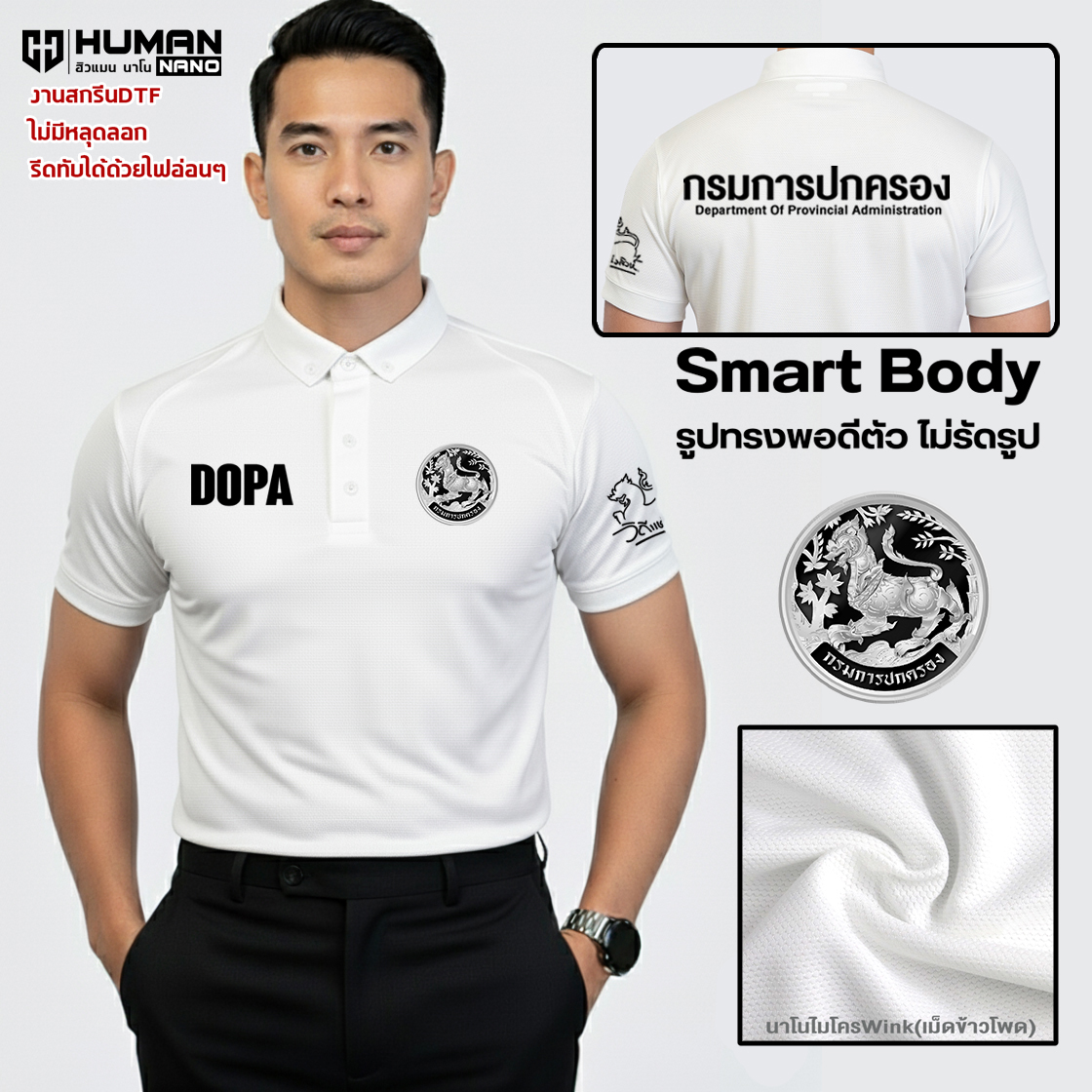 DB2เสื้อโปโลชาย งานสกรีนDFT โลโก้กรมการปกครอง